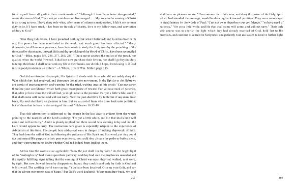 freed myself from all guilt in their condemnation ." " Although I have been twice disappointed ," wrote this man of God , " I am not yet cast down or discouraged . . . . My hope in the coming of Christ is as strong as ever . I have done only what , after years of solemn consideration , I felt it my solemn duty to do . If I have erred , it has been on the side of charity , love to my fellow men , and conviction of duty to God ."