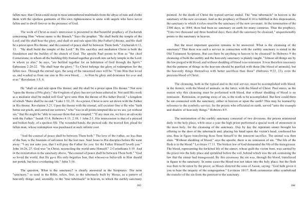The question , What is the sanctuary ? is clearly answered in the Scriptures . The term " sanctuary ," as used in the Bible , refers , first , to the tabernacle built by Moses , as a pattern of heavenly things ; and , secondly , to the " true tabernacle " in heaven , to which the earthly sanctuary