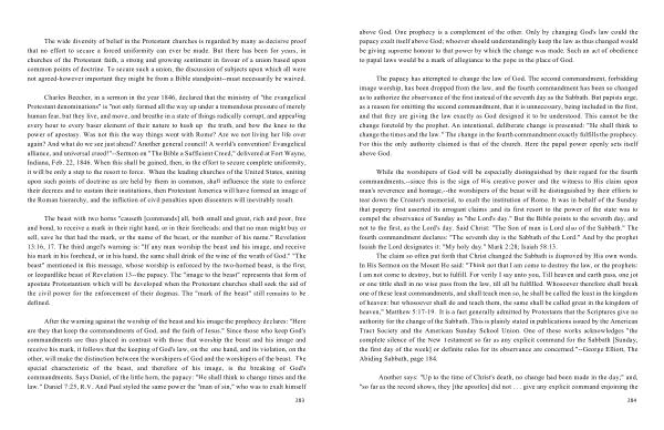 The papacy has attempted to change the law of God . The second commandment , forbidding image worship , has been dropped from the law , and the fourth commandment has been so changed as to authorize the observance of the first instead of the seventh day as the Sabbath . But papists urge , as a reason for omitting the second commandment , that it is unnecessary , being included in the first , and that they are giving the law exactly as God designed it to be understood . This cannot be the change foretold by the prophet . An intentional , deliberate change is presented : " He shall think to change the times and the law ." The change in the fourth commandment exactly fulfills the prophecy . For this the only authority claimed is that of the church . Here the papal power openly sets itself above God .