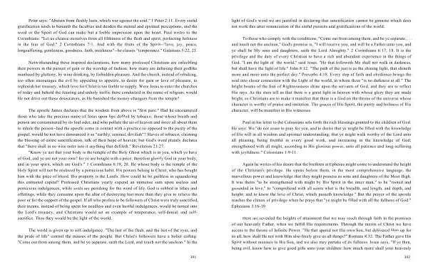 To those who comply with the conditions , " Come out from among them , and be ye separate , . . . and touch not the unclean ," God ' s promise is , " I will receive you , and will be a Father unto you , and ye shall be My sons and daughters , saith the Lord Almighty ." 2 Corinthians 6:17 , 18 . It is the privilege and the duty of every Christian to have a rich and abundant experience in the things of God . " I am the light of the world ," said Jesus . " He that followeth Me shall not walk in darkness , but shall have the light of life ." John 8:12 . " The path of the just is as the shining light , that shineth more and more unto the perfect day ." Proverbs 4:18 . Every step of faith and obedience brings the soul into closer connection with the Light of the world , in whom there " is no darkness at all ." The bright beams of the Sun of Righteousness shine upon the servants of God , and they are to reflect His rays . As the stars tell us that there is a great light in heaven with whose glory they are made bright , so Christians are to make it manifest that there is a God on the throne of the universe whose character is worthy of praise and imitation . The graces of His Spirit , the purity and holiness of His character , will be manifest in His witnesses .