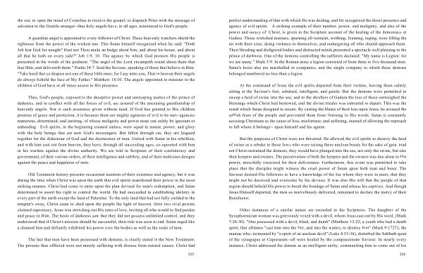 Old Testament history presents occasional mention of their existence and agency ; but it was during the time when Christ was upon the earth that evil spirits manifested their power in the most striking manner . Christ had come to enter upon the plan devised for man ' s redemption , and Satan determined to assert his right to control the world . He had succeeded in establishing idolatry in every part of the earth except the land of Palestine . To the only land that had not fully yielded to the tempter ' s sway , Christ came to shed upon the people the light of heaven . Here two rival powers claimed supremacy . Jesus was stretching out His arms of love , inviting all who would to find pardon and peace in Him . The hosts of darkness saw that they did not possess unlimited control , and they understood that if Christ ' s mission should be successful , their rule was soon to end . Satan raged like a chained lion and defiantly exhibited his power over the bodies as well as the souls of men .