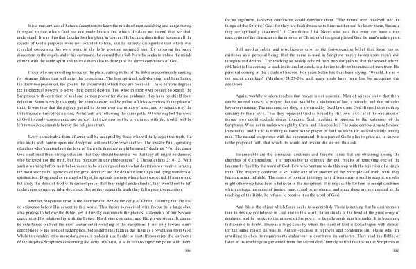 Still another subtle and mischievous error is the fast-spreading belief that Satan has no existence as a personal being ; that the name is used in Scripture merely to represent men ' s evil thoughts and desires . The teaching so widely echoed from popular pulpits , that the second advent of Christ is His coming to each individual at death , is a device to divert the minds of men from His personal coming in the clouds of heaven . For years Satan has thus been saying , " Behold , He is in the secret chambers " ( Matthew 24:23-26 ); and many souls have been lost by accepting this deception .