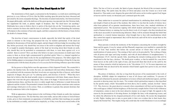 Many endeavour to account for spiritual manifestations by attributing them wholly to fraud and sleight of hand on the part of the medium . But while it is true that the results of trickery have often been palmed off as genuine manifestations , there have been , also , marked exhibitions of supernatural power . The mysterious rapping with which modern spiritualism began was not the result of human trickery or cunning , but was the direct work of evil angels , who thus introduced one of the most successful of soul-destroying delusions . Many will be ensnared through the belief that spiritualism is a merely human imposture ; when brought face to face with manifestations which they cannot but regard as supernatural , they will be deceived , and will be led to accept them as the great power of God .