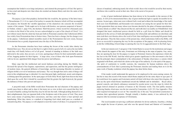 Many urge that the intellectual and moral darkness prevailing during the Middle Ages favoured the spread of her dogmas , superstitions , and oppression , and that the greater intelligence of modern times , the general diffusion of knowledge , and the increasing liberality in matters of religion forbid a revival of intolerance and tyranny . The very thought that such a state of things will exist in this enlightened age is ridiculed . It is true that great light , intellectual , moral , and religious , is shining upon this generation . In the open pages of God ' s Holy Word , light from heaven has been shed upon the world . But it should be remembered that the greater the light bestowed , the greater the darkness of those who pervert and reject it .