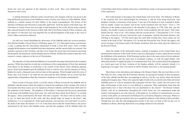 But in this homage to the papacy the United States will not be alone . The influence of Rome in the countries that once acknowledged her dominion is still far from being destroyed . And prophecy foretells a restoration of her power . " I saw one of his heads as it were wounded to death ; and his deadly wound was healed : and all the world wondered after the beast ." Verse 3 . The infliction of the deadly wound points to the downfall of the papacy in 1798 . After this , says the prophet , " his deadly wound was healed : and all the world wondered after the beast ." Paul states plainly that the " man of sin " will continue until the second advent . 2 Thessalonians 2:3-8 . To the very close of time he will carry forward the work of deception . And the Revelator declares , also referring to the papacy : " All that dwell upon the earth shall worship him , whose names are not written in the book of life ." Revelation 13:8 . In both the Old and the New World , the papacy will receive homage in the honour paid to the Sunday institution , that rests solely upon the authority of the Roman Church .