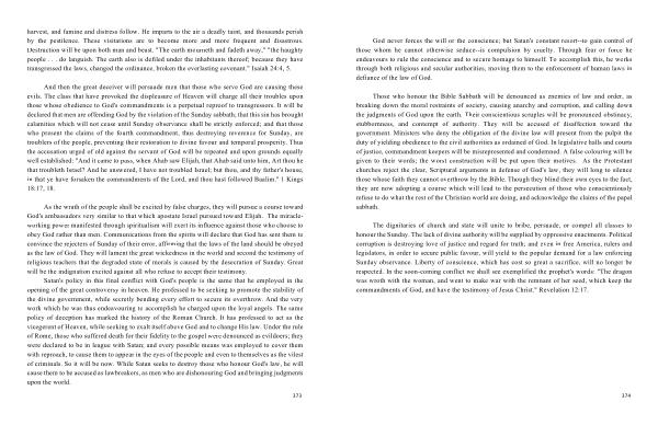 The dignitaries of church and state will unite to bribe , persuade , or compel all classes to honour the Sunday . The lack of divine authority will be supplied by oppressive enactments . Political corruption is destroying love of justice and regard for truth ; and even in free America , rulers and legislators , in order to secure public favour , will yield to the popular demand for a law enforcing Sunday observance . Liberty of conscience , which has cost so great a sacrifice , will no longer be respected . In the soon-coming conflict we shall see exemplified the prophet ' s words : " The dragon was wroth with the woman , and went to make war with the remnant of her seed , which keep the commandments of God , and have the testimony of Jesus Christ ." Revelation 12:17 .