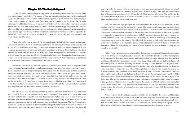 But God will have a people upon the earth to maintain the Bible , and the Bible only , as the standard of all doctrines and the basis of all reforms . The opinions of learned men , the deductions of science , the creeds or decisions of ecclesiastical councils , as numerous and discordant as are the churches which they represent , the voice of the majority--not one nor all of these should be regarded as evidence for or against any point of religious faith . Before accepting any doctrine or precept , we should demand a plain " Thus saith the Lord " in its support . Satan is constantly endeavouring to attract attention to man in the place of God . He leads the people to look to bishops , to pastors , to professors of theology , as their guides , instead of searching the Scriptures to learn their duty for themselves . Then , by controlling the minds of these leaders , he can influence the multitudes according to his will .