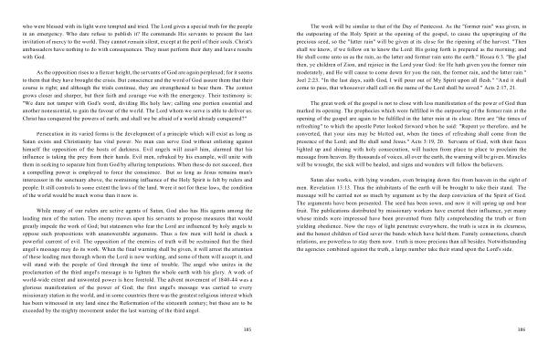 The great work of the gospel is not to close with less manifestation of the power of God than marked its opening . The prophecies which were fulfilled in the outpouring of the former rain at the opening of the gospel are again to be fulfilled in the latter rain at its close . Here are " the times of refreshing " to which the apostle Peter looked forward when he said : " Repent ye therefore , and be converted , that your sins may be blotted out , when the times of refreshing shall come from the presence of the Lord ; and He shall send Jesus ." Acts 3:19 , 20 . Servants of God , with their faces lighted up and shining with holy consecration , will hasten from place to place to proclaim the message from heaven . By thousands of voices , all over the earth , the warning will be given . Miracles will be wrought , the sick will be healed , and signs and wonders will follow the believers .