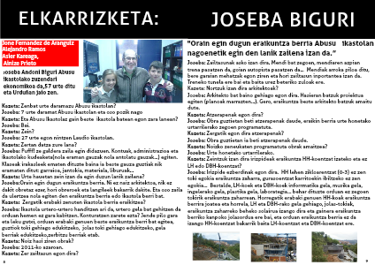 Joseba:Orain egin dugun eraikuntza berria. Ni ez naiz arkitektoa, nik ez dakit obretaz ezer, hori obreroek eta langileek bakarrik dakite. Eta oso zaila da ulertzea nola egiten den eraikuntza berria edo ikastola berri bat.