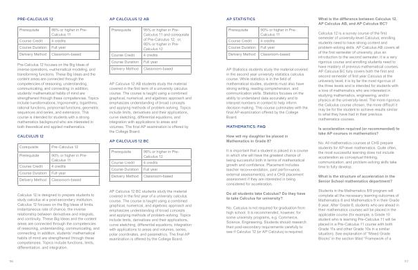 No . All mathematics courses at CHS prepare students for AP-level mathematics . Quite often , the most successful learning does not include acceleration as conceptual thinking , communication , and problem-solving skills take time to fully develop .