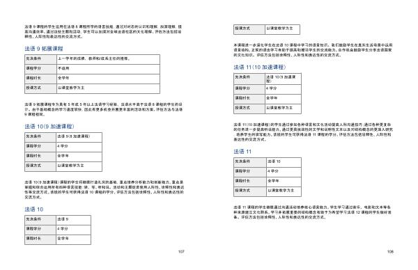 法语 11 ( 10 加速课程 ) 的学生通过参加各种语言和文化活动提高人际沟通技巧 ; 通过各种更复杂 的任务进一步提高听说能力 。 通过更具挑战性的文学和说明性文本以及对结构概念的更深入研究 , 培养学生的读写能力 。 该班的学生可获得法语 11 课程的学分 。 评估方法包括诠释性 、 人际性和 表达性的交流方式 。