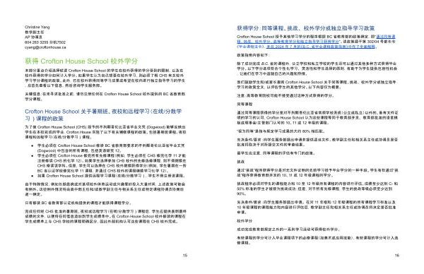 我们鼓励学生和 / 或家长查阅 Crofton House School 关于同等课程 、 挑战 、 校外学分或独立指导 学习的政策全文 , 以评估学生的其他学分 。 以下内容仅为概要 。