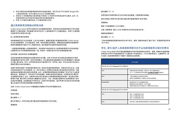 Crofton House 旨在为学生提供根据最新知识和丰富经验得出的指导 。 清晰 、 准确的沟通是熟练 地驾驭从中学学习到高等教育学习过渡的各个阶段的核心 。 下文介绍职责划分 , 以确保学生 、 家 长 / 监护人和高等教育顾问了解整个流程和各自的职责 。