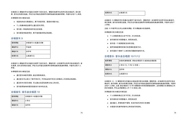 合唱音乐 8 课程的学生将通过合唱学习音乐知识 。 课程将培养学生的声乐和合奏技巧 、 音乐素 养 、 音乐史和理论技能 。 评估方法可能包括教师对排练技能和表演的观察 、 书面作业和个人录音 。
