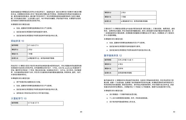 计算机学习 10 课程旨在探索当今由技术驱动的世界 : 聊天机器人 、 计算机视觉 、 推荐系统 、 虚拟 现实 、 互联网和大数据 。 学生将使用多种编程语言 、 软件工具和硬件设备开展各种实践项目 , 进 一步提高媒体和计算机素养 。 本课程要求掌握解决问题和自主学习能力 。 本课程是 AP 计算机科 学 A 的推荐课程 。
