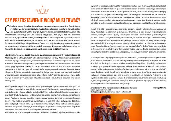 iłem podjąć ryzyko.” W odbiorze występów formacji Queen + Adam Lambert zwolennicy zespołu oka-