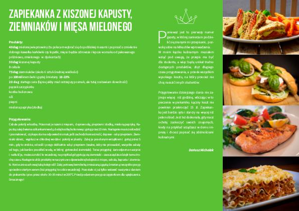 Produkty: 40 dag mielonej wieprzowiny( tu polecam wybrać się do pobliskiej masarni i poprosić o zmielenie dobrego kawałka karkówki czy łopatki, mięso będzie zdrowsze i lepsze w smaku od pakowanego próżniowo, zmielonego w dyskontach) 30 dag kiszonej kapusty 3 cebule 75 dag ziemniaków( około 6 sztuk średniej wielkości) po 100ml kremówki i gęstej śmietany 18-22 % 20 dag startego sera( fajnie jakby miał ostrzejszy posmak, ale tutaj zostawiam dowolność) pęczek szczypiorku kostka bulionowa sól pieprz mielona papryka( słodka)