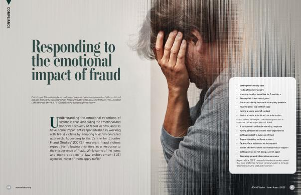 Editor ’ s note : This article is the second part of a two-part series on the emotional effects of fraud and how financial institutions ( FIs ) can respond to address the issue . The first part , “ The Emotional Consequences of Fraud ,” is available on the Europe Express column .