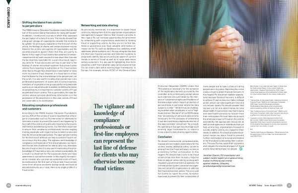 The vigilance and knowledge of compliance professionals or first-line employees can represent the last line of defense for clients who may otherwise become fraud victims