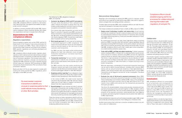 Compliance officers should establish ongoing and formal processes for collaborating and sharing information with regulators , LE and peer FIs