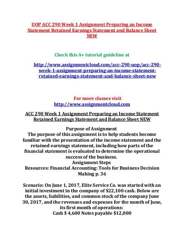 ACC 290 UOP ACC 290 Week 1 Assignment Preparing an Income