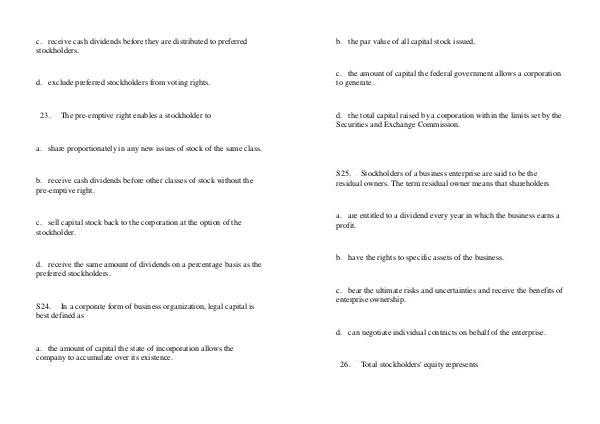 23. The pre-emptive right enables a stockholder to