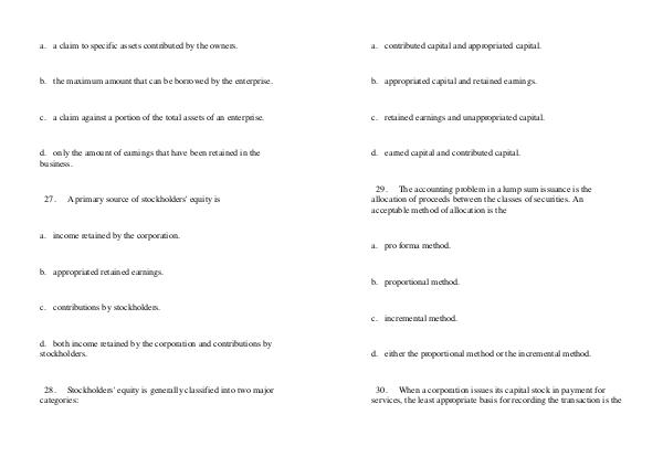 29. The accounting problem in a lump sum issuance is the allocation of proceeds between the classes of securities. An acceptable method of allocation is the