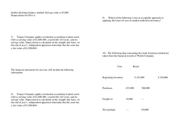 10) The following data concerning the retail inventory method are taken from the financial records of Welch Company.