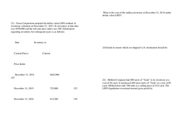 23) Gross Corporation adopted the dollar-value LIFO method of inventory valuation on December 31, 2013. Its inventory at that date was $ 550,000 and the relevant price index was 100. Information regarding inventory for subsequent years is as follows: