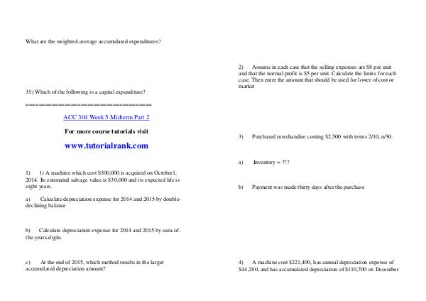 ACC 304 Week 5 Midterm Part 2 For more course tutorials visit www. tutorialrank. com