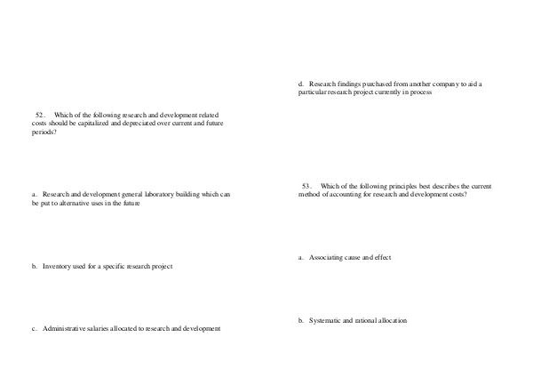 53. Which of the following principles best describes the current method of accounting for research and development costs?