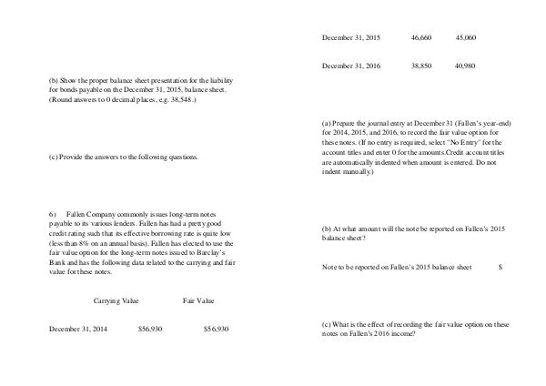 ( b) At what amount will the note be reported on Fallen’ s 2015 balance sheet?