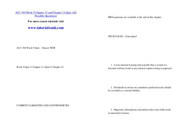 ACC 304 Week 9 Chapter 13 and Chapter 14 Quiz( All Possible Questions)