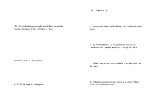 20. Current liabilities are usually recorded and reported in financial statements at their full maturity value.