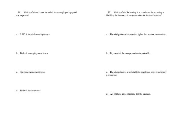 51. Which of these is not included in an employer ' s payroll tax expense?