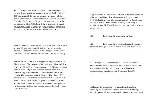 ( 2) Employing the proportional method, assuming the recent price quote on the common stock reflects fair value.