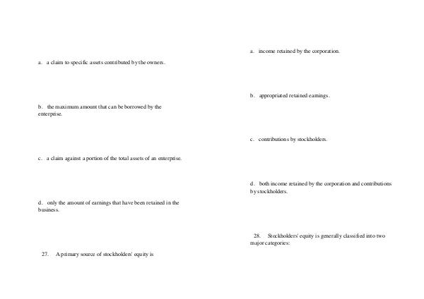 27. A primary source of stockholders ' equity is