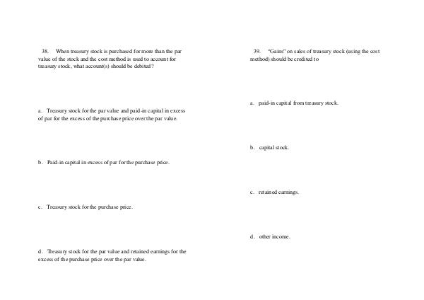 39. ― Gains " on sales of treasury stock( using the cost method) should be credited to