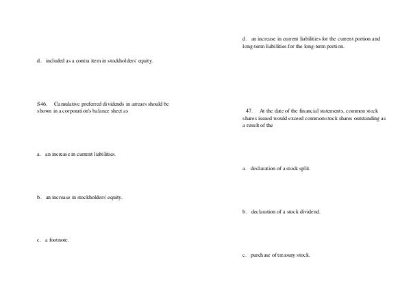 47. At the date of the financial statements, common stock shares issued would exceed common stock shares outstanding as a result of the