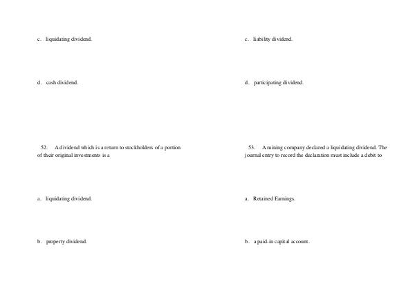52. A dividend which is a return to stockholders of a portion of their original investments is a