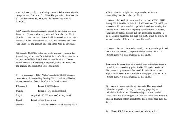 a.) Determine the weighted-average number of shares outstanding as of December 31, 2015.