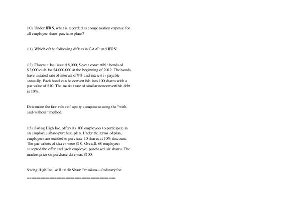 10) Under IFRS, what is recorded as compensation expense for all employee share-purchase plans?