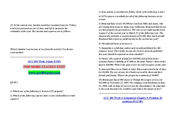 ACC 401 Week 4 Assignment Chapter 9, Problem 42