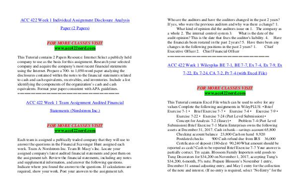 ACC 422 Week 1 Wileyplus BE 7-1, BE 7-7, Ex 7-4, Ex 7-9, Ex