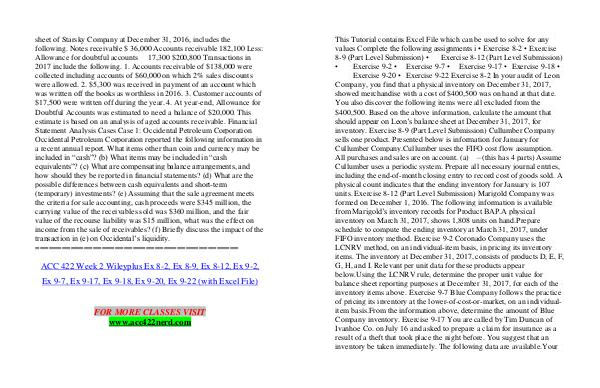 ACC 422 Week 2 Wileyplus Ex 8-2, Ex 8-9, Ex 8-12, Ex 9-2,