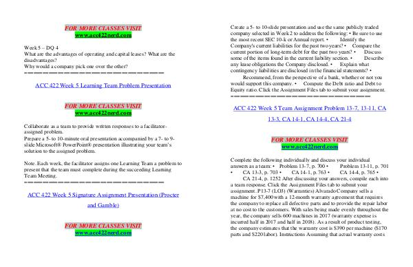 ACC 422 Week 5 Team Assignment Problem 13-7, 13-11, CA