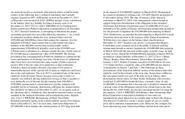 December 31, 2017? P13-11 (LO3) WRITING (Loss Contingencies: