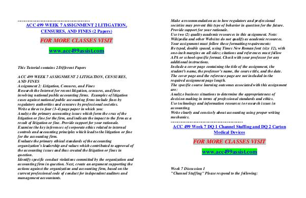 ACC 499 Week 7 DQ 1 Channel Stuffing and DQ 2 Carton