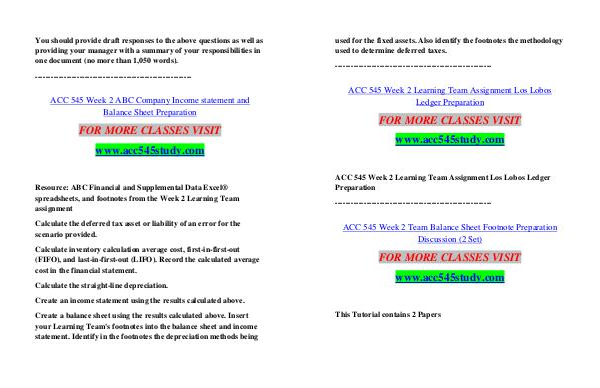 ACC 545 Week 2 Team Balance Sheet Footnote Preparation