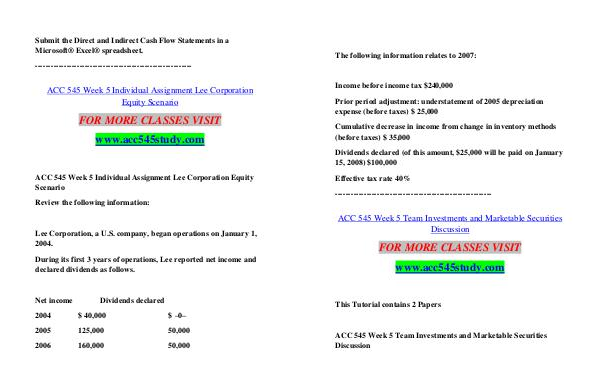 ACC 545 Week 5 Individual Assignment Lee Corporation